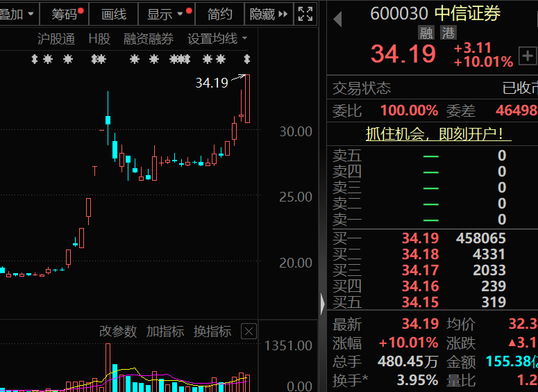 近日,头部券商合并再引猜想。消息面上,11月6日,中信证券空置近半年的总经理人选落地,董事会会议同意聘任邹迎光为公司总经理。此外,中信建投空置一年有余的总经理也即将到任,由中信证券前高管金剑华出任。随着人事变动落地,这两大头部券商合并猜想持续发酵。11月7日,中信证券强势封板,股价创出历史新高。