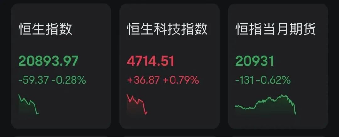 港股方面,恒生科技指数和恒生指数强势开盘,随后也有所回落。其中恒生指数翻绿。
