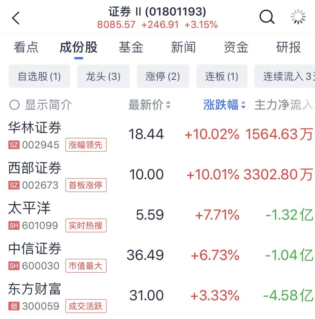 盘面上,证券板块涨幅居前,华林证券、西部证券涨停。