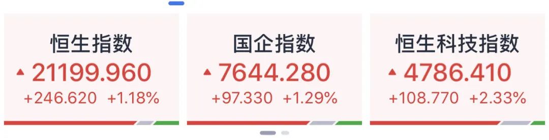 与此同时,港股也大涨,香港恒生指数开盘涨超1%,恒生科技指数涨超2%。
